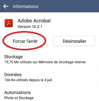 2. Forcez l’arrêt de l’application Android