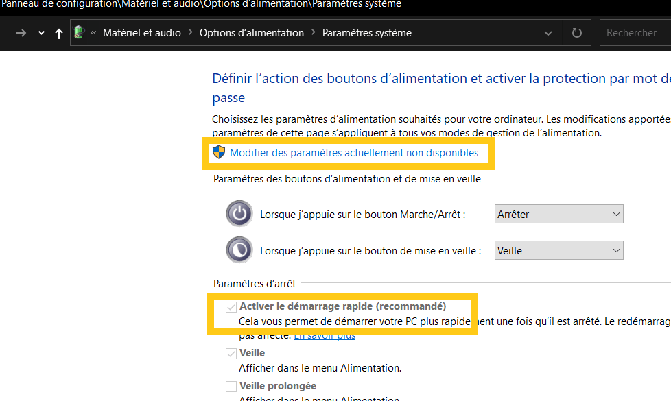 Désactiver le démarrage rapide pour résoudre ce problème :