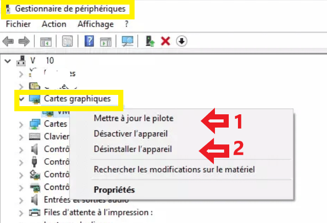 Développez la catégorie « Cartes graphiques » et faites un clic droit sur votre carte graphique.