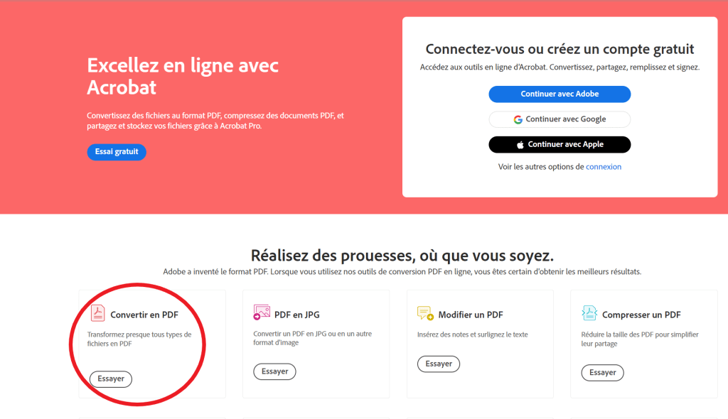 Comment convertir un fichier en PDF gratuitement avec Adobe Acrobat Online ?