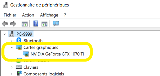 Une fois dans le gestionnaire de périphériques, déroulez la catégorie Cartes graphiques.