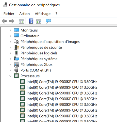 Si vous voyez plusieurs fois le même CPU c’est normal, il s’agit du nombre de core que possède votre processeur.