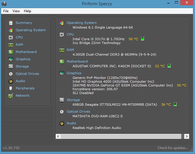 Speccy vous permet de connaître tous les détails de votre ordinateur, comme le modèle, le fabricant, la fréquence, la température, la consommation et bien d’autres caractéristiques de votre carte graphique, de votre processeur, de votre mémoire vive (RAM), de votre disque dur (HDD ou SSD), de votre carte mère, de votre carte son, de votre carte réseau, etc.