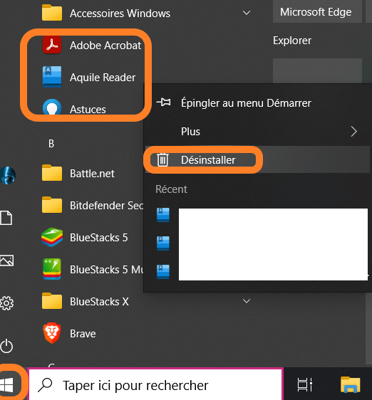 Une autre méthode pour désinstaller un programme sur Windows est d’utiliser le menu Démarrer ou le Bureau. Cette méthode est rapide et pratique, mais elle ne fonctionne pas pour tous les programmes. Voici comment procéder :