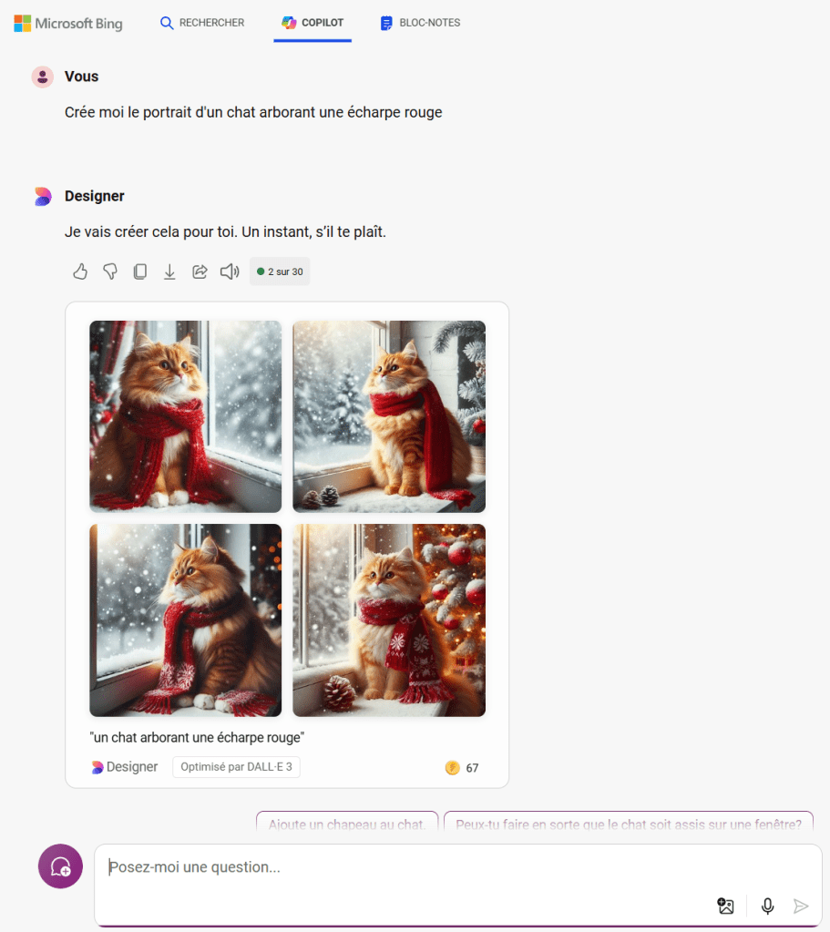 Vous interagissez avec Copilot de la même manière que vous le faites avec ChatGPT, mais avec quelques options supplémentaires.