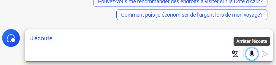 Appuyez sur l’icône du microphone en bas de l’écran. Parlez de votre requête, puis soumettez-la. Copilot affichera et lira les résultats. Cliquez ou appuyez sur l’icône de niveau audio pour arrêter la narration.