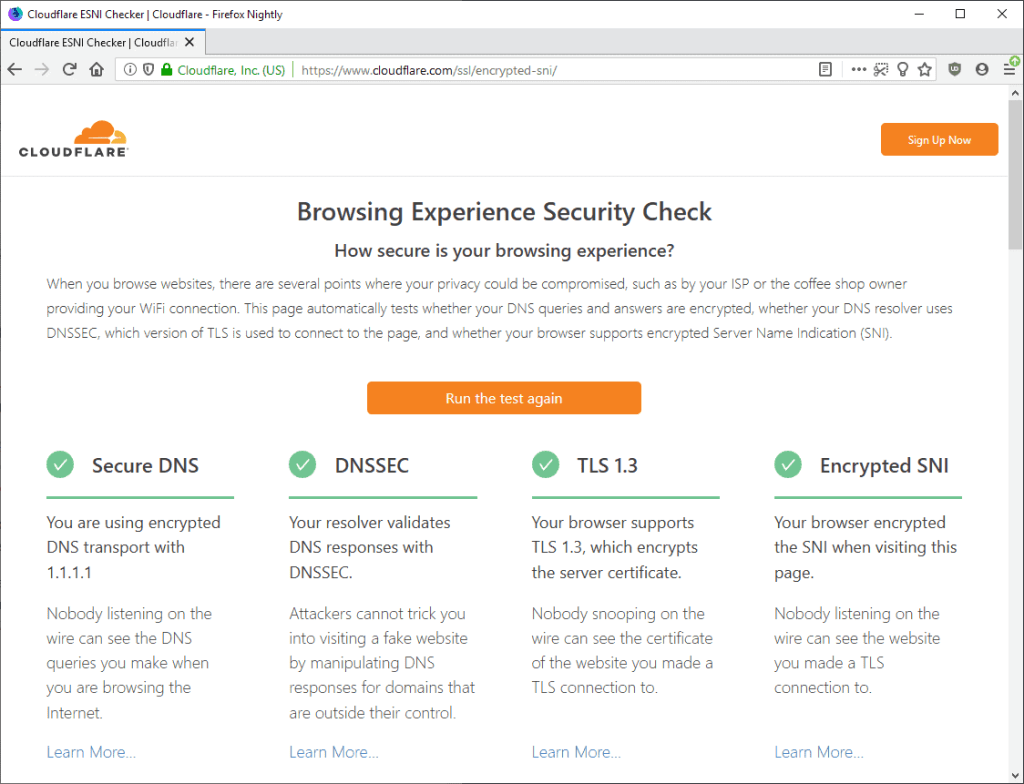 Le Browsing Experience Security Check de Cloudflare teste les requêtes DNS (Domain Name System) pour voir si votre navigateur est vulnérable aux attaques.